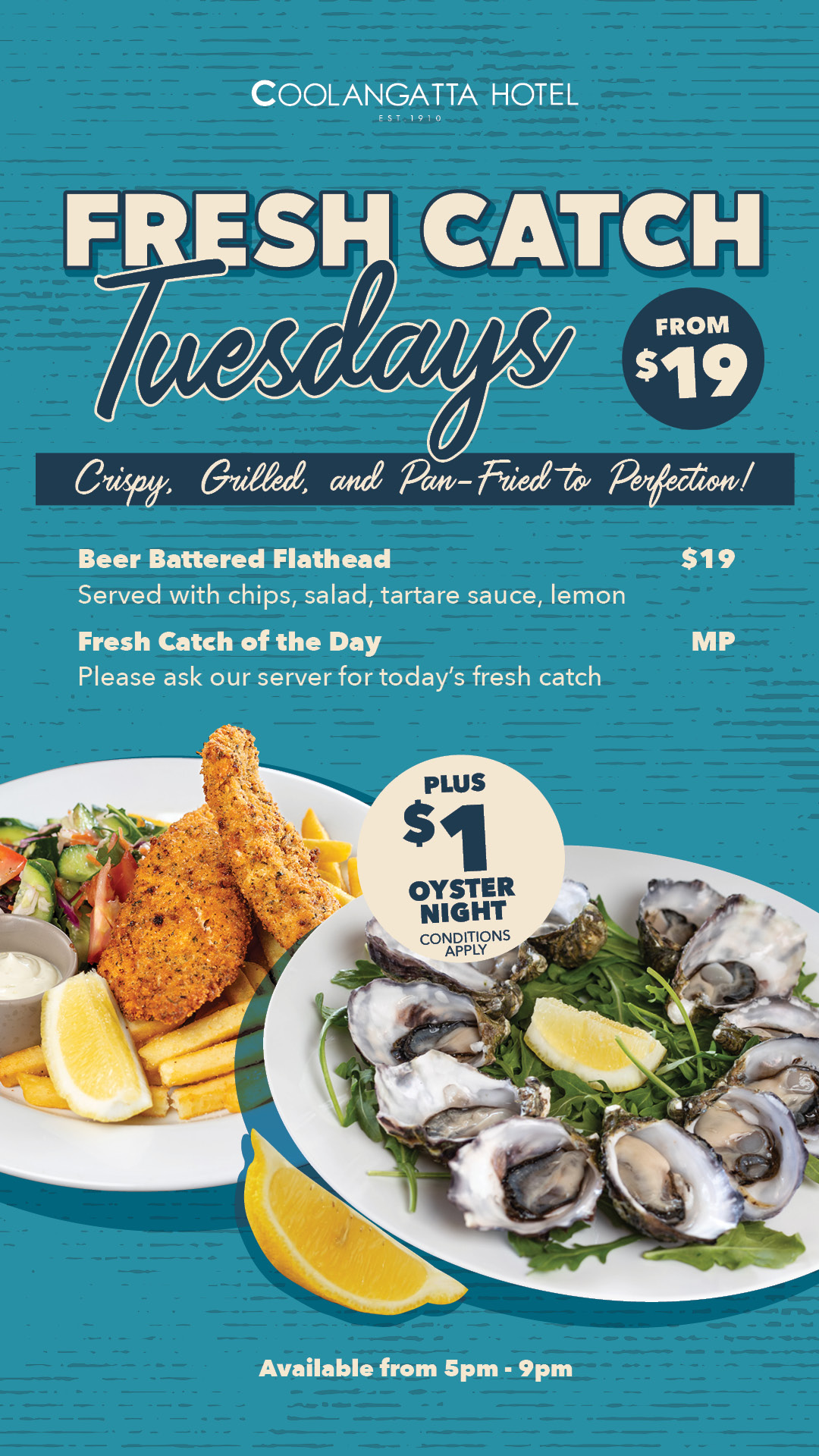 Dive into the freshest flavours every Tuesday from 5pm–9pm.